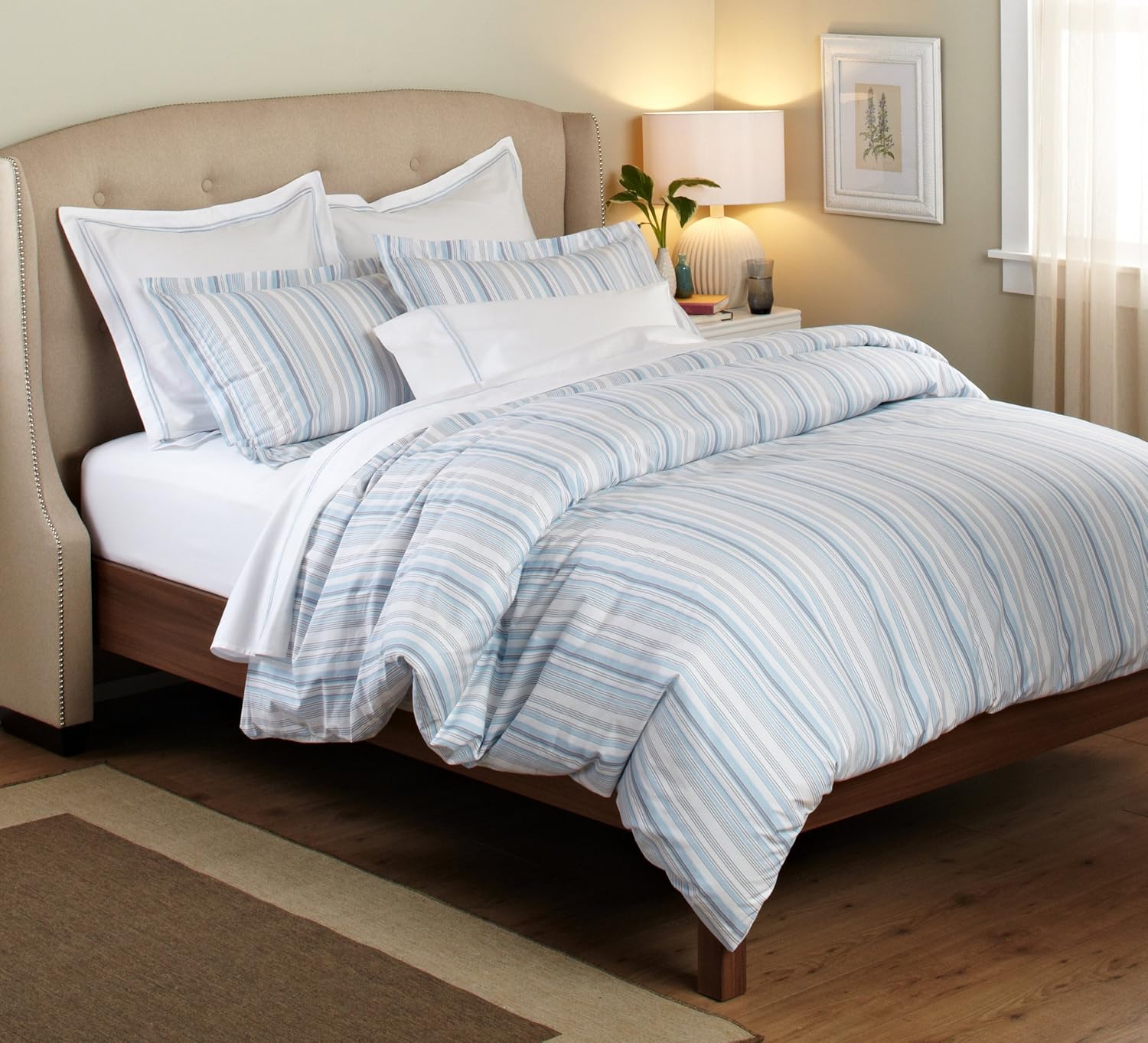 I still need to buy some crib sheets and a few other items. I ordered a bunch of things from Amazon yesterday including a changing pad and covers. Here is the general look, though the room also has taupe/pale yellow walls. We are leaving the queen-sized bed in there for the time being, so I also tempted to buy this duvet cover: