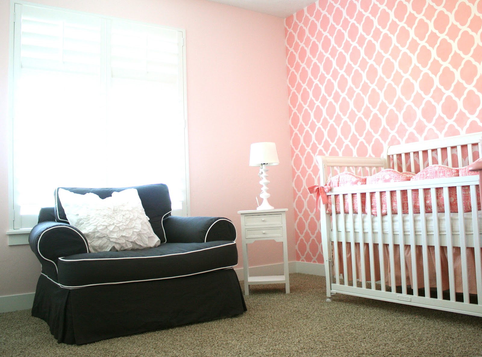 So I'm starting to plan out our little girl's nursery. My jumping off point is the navy glider we already own that we used for DS's nursery. So I thought about doing navy, coral or pink & gold.